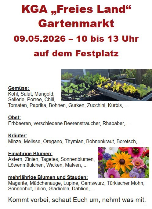 Wir sind auf der Suche nach Gartenfreunde/*innen, die uns gerne bei der Planung, Vorbereitung und Durchführen unserer Feste in der KGA „Freies Land“ unterstützen.