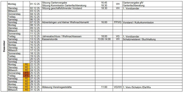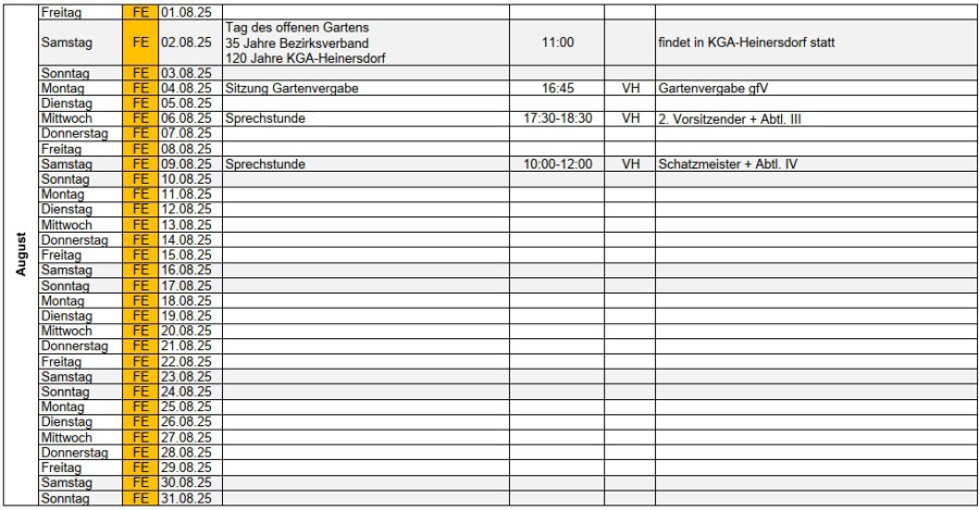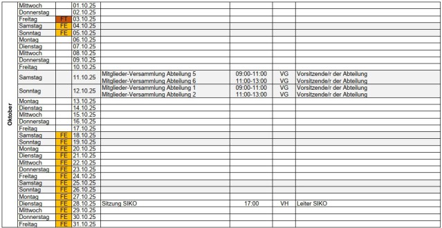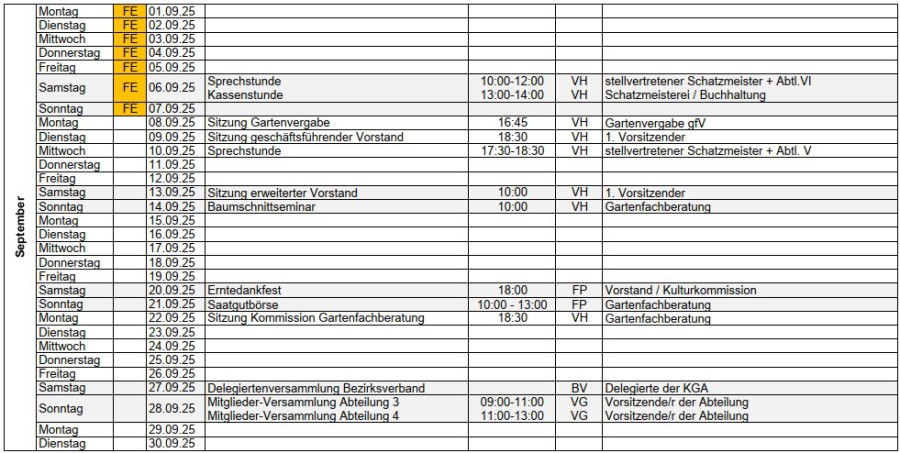 Achtung: Aktualisierung Terminplanung 2025 zum 18.08.2025 erfolgt.